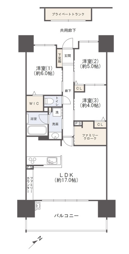 【居間・リビング】LDKは広々約17.0帖。センターオープンサッシで開口が広く、開放感があります