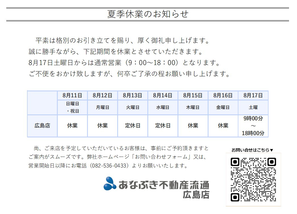 広島店(お知らせ) 2024.08.08