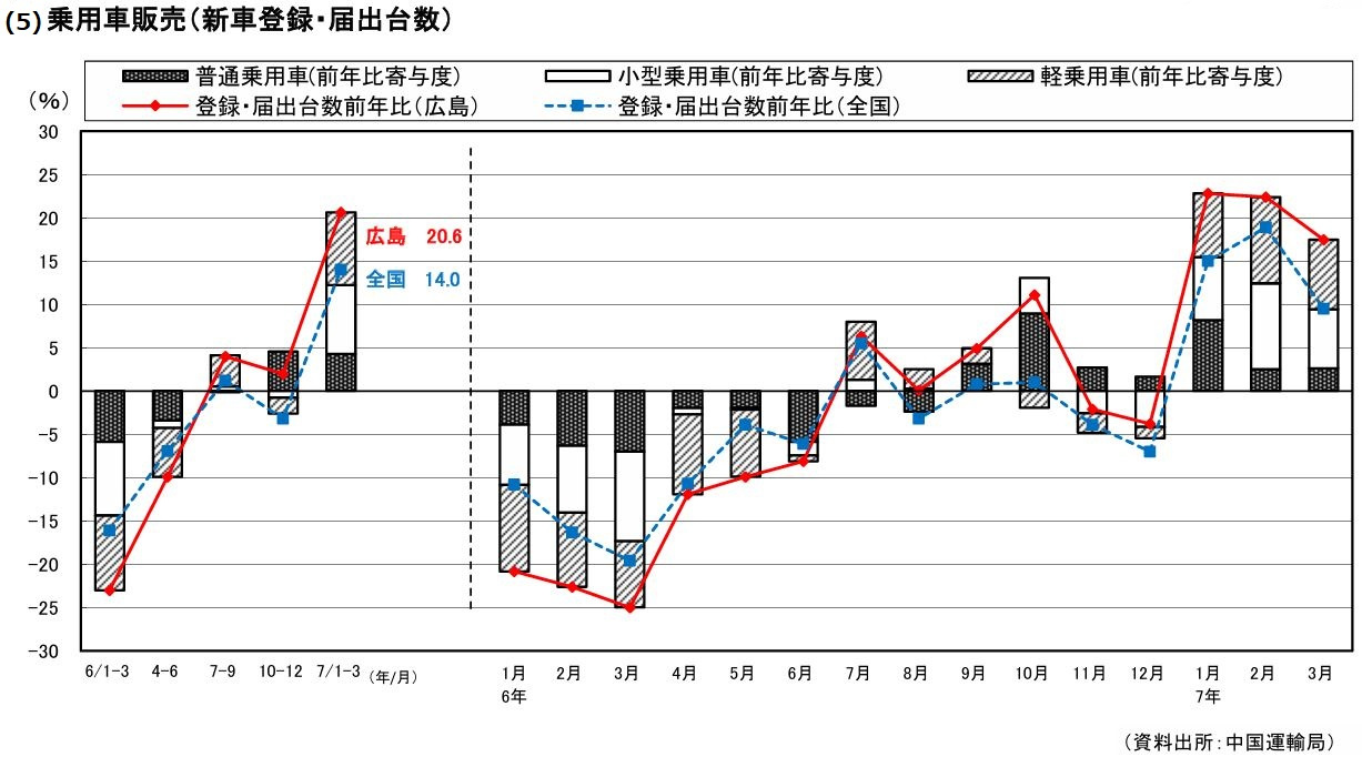 (5)乗用車販売(新車登録・届出台数)は、自動車認証不正取得問題の影響から回復しつつあり、問題発生前の水準に戻りつつある。