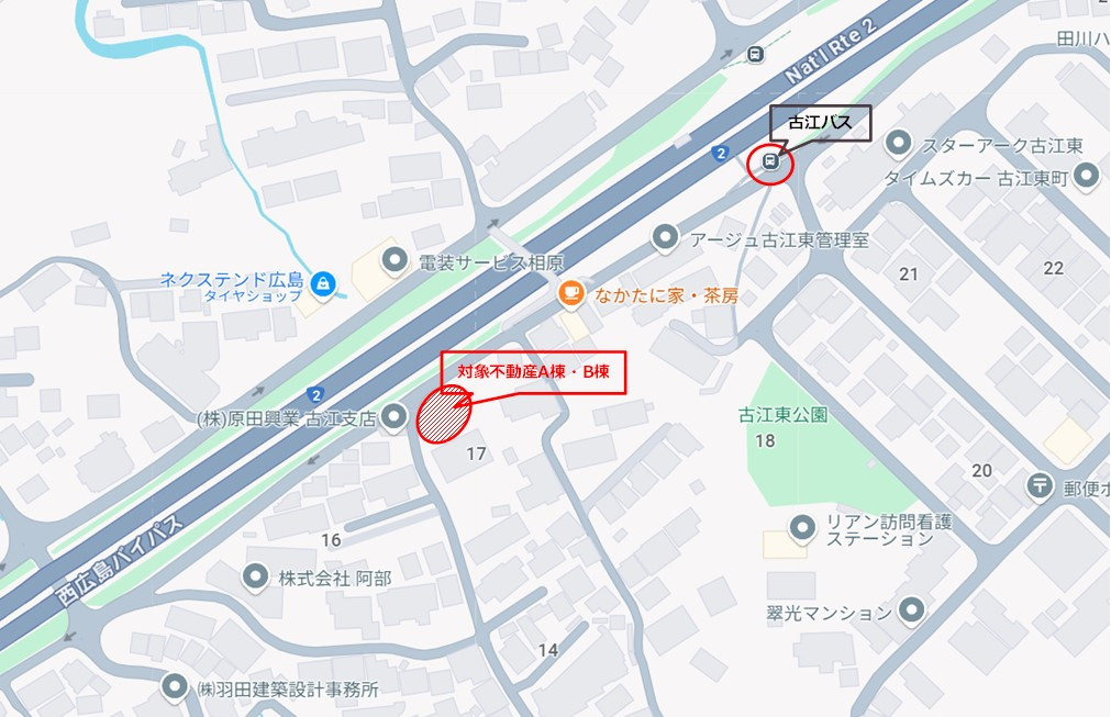 広電バス「古江」バス停から徒歩2分!