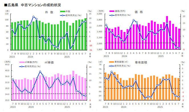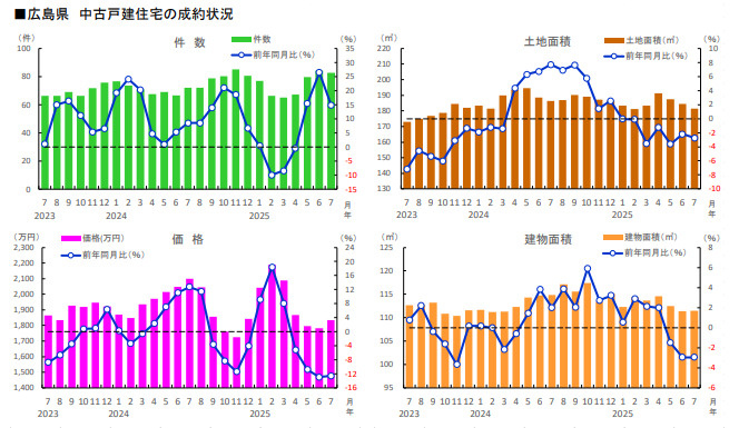 2025年8月の広島県の不動産取引状況は、中古マンション・中古戸建ともに増えています。