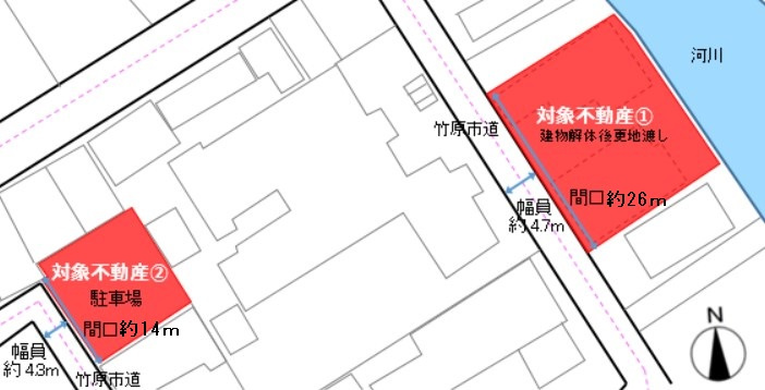 目の前が町並み保存地区のリバーサイド土地+駐車スペースの販売です!