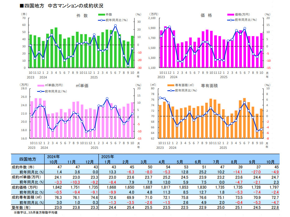 2.2025 年 10 月 中国・四国・九州別の中古マンション成約状況