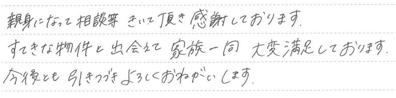 素敵な物件と出会えて家族一同大変満足しております。