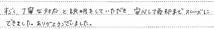 すごく丁寧な対応と説明をしていただき 安心して売却までスムーズにできました。ありがとうございました。