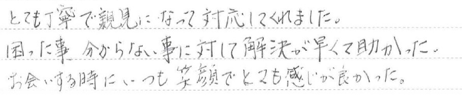 このたびは心温まるご感想をいただき、誠にありがとうございます。お客様に安心してお取引いただけるよう心がけておりましたので、そのように感じていただけたことを大変嬉しく思います。