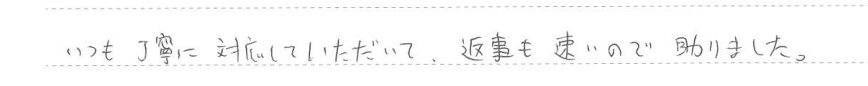 いつも丁寧に対応していただいて、返事も早いので助かりました。