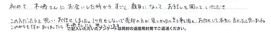 初めて木嶋さんにお会いした時からすごく親身になってお話を聞いていただきこの方だったらと思いお任せしました。